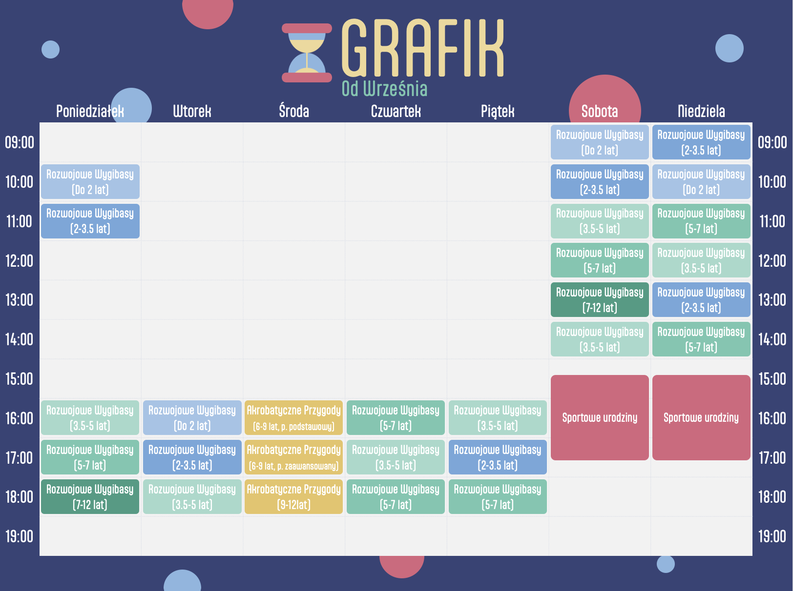 Rozwojowe Wygibasy to zajęcia ogólnorozwojowe z elementami gimnastyki, stworzone dla dzieci w wieku 1-12 lat. Dzięki połączeniu zabawy i aktywności fizycznej wspieramy koordynację, równowagę i ogólną sprawność najmłodszych.